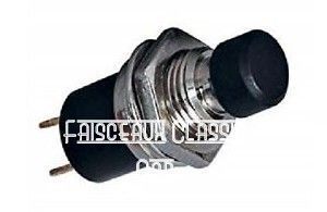 Bouton poussoir à accrochage miniature, cosses à souder, Long total 27 mm, perçage 7 mm.