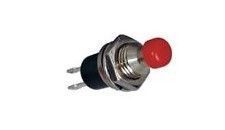 Bouton poussoir unipolaire miniature, Long. total = 27 mm, perçage 7 mm, cosses à souder, 5 Amp.